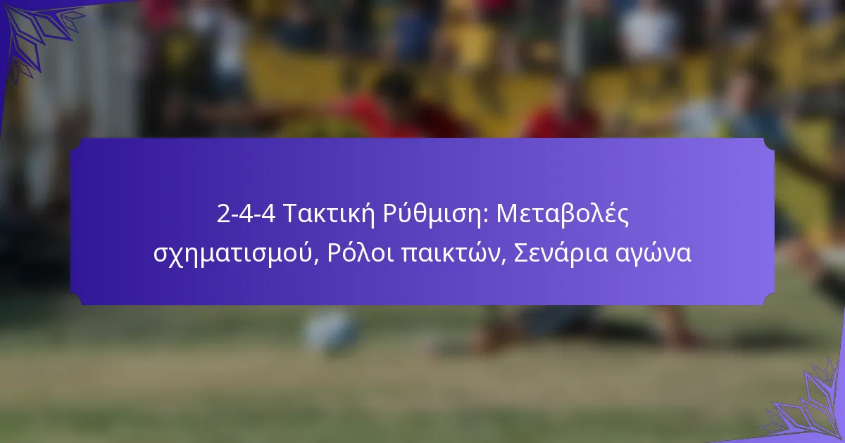 Η τακτική διάταξη 2-4-4 στο ποδόσφαιρο είναι μια δυναμική μορφή που δίνει προτεραιότητα στην επιθετική παιχνιδιού, διατηρώντας παράλληλα μια ισχυρή παρουσία στη μεσαία γραμμή. Με δύο αμυντικούς, τέσσερις μέσους και τέσσερις επιθετικούς, αυτή η διάταξη… 2-4-4 Τακτική Ρύθμιση: Μεταβολές σχηματισμού, Ρόλοι παικτών, Σενάρια αγώνα